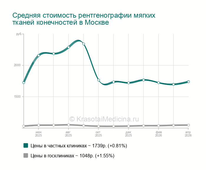 Рентгенография мягких тканей конечностей – неинвазивная диагностическая процедура, отображающая строение дермы, гиподермы, мышц, сухожилий, связок и суставных сумок конечностей. Рентгенограммы информативны при выявлении травматических и воспалительных изменений тканей, опухолей, метастазов. В отдельных случаях перед рентгенографией выполняется контрастирование мышц с введением воздуха в исследуемую область. Стоимость процедуры учитывает количество проекций, тип предоставления результата (стандартный, цифровой).