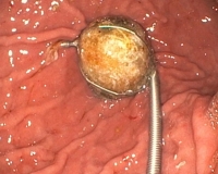 - Эндоскопия ЖКТ. Фиброгастродуоденоскопия позволяет выявить наличие застойного содержимого в желудке, отечность слизистой оболочки, эрозивно-язвенные дефекты в зоне свища. Примерно в 70% исследований удается обнаружить фиксированные конкременты и свищевое отверстие в пилородуоденальной зоне. В ходе ФГДС может быть предпринята попытка удаления желчного конкремента.