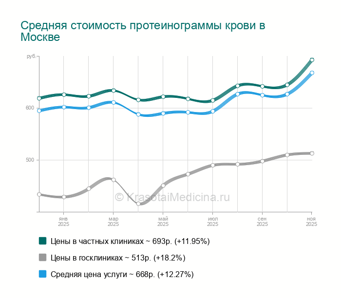 Большая часть протеинов крови представлена альбуминами - их содержание в плазме варьирует от 55 до 65%. Оставшаяся часть белков приходится на фракцию глобулинов. Синтез альбуминов, альфа- и бета-глобулинов происходит в клетках печени. Значительная доля бета- и гамма-глобулинов вырабатывается в костном мозге и лимфатической ткани. Если процентное соотношение компонентов белка отклоняется от нормальных значений, развивается диспротеинемия. При этом уровень общего белка может оставаться неизменным.