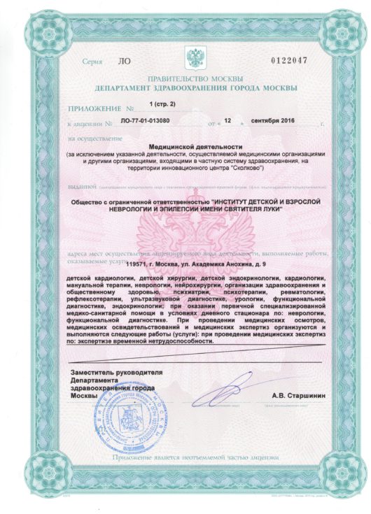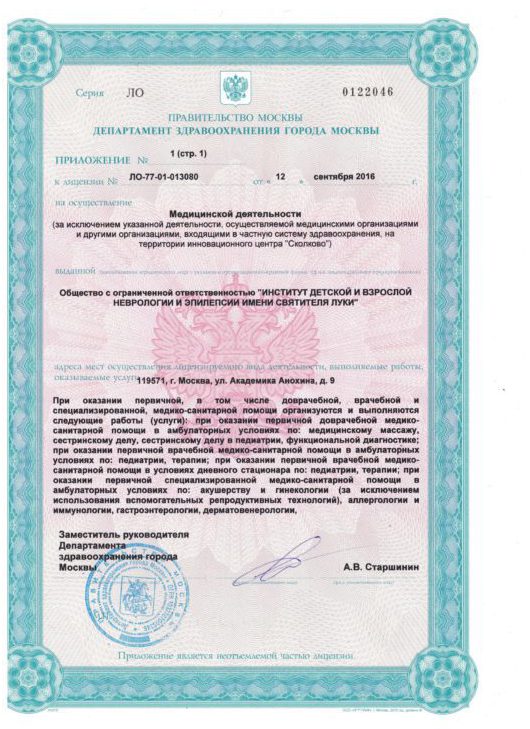 «Институт детской и взрослой неврологии и эпилепсии им. Св. Луки» специализируется на диагностике и лечении заболеваний нервной системы у детей и взрослых. Основное внимание уделяется обследованию и подготовке к хирургическому лечению больных тяжелыми формами эпилепсии. В «Институте детской и взрослой неврологии и эпилепсии» проводятся консультации неврологов, эпилептологов, педиатра, психолога, психиатра, генетика, логопеда; выполняется компьютерная электроэнцефалография, ЭХО-ЭГ, УЗДГ сосудов головного мозга, КТ и МРТ. Институт специализируется на помощи детям и взрослым, имеющим различные заболевания нервной системы, в частности, эпилепсию. Консультации проводят ведущие российские специалисты по неврологии. Для проведения консилиумов приглашаются профессора из Германии и Франции. В Институте функционирует уникальная лаборатория прехирургической диагностики эпилепсии под руководством В.А. Чадаева. В 2016 году она значительно расширилась: у нас открыты две палаты для пациентов, проходящих предоперационное обследование.