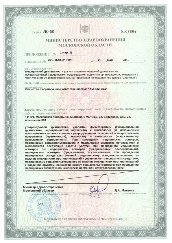 Лечебно-диагностический центр «АМ-Клиника» в Мытищах оказывает широкий спектр медицинских услуг в области урологии и андрологии, гинекологии, кардиологии, неврологии, гастроэнтерологии, эндокринологии, офтальмологии, педиатрии. В клинике осуществляется лабораторная и ультразвуковая диагностика, ведение и прерывание беременности, медицинский массаж, мануальная терапия, вакцинация и мн. др. К услугам посетителей медицинского центра «АМ-Клиника» - современная высокоточная диагностика на оборудовании экспертного уровня, результативное лечение и своевременная профилактика широкого спектра заболеваний.