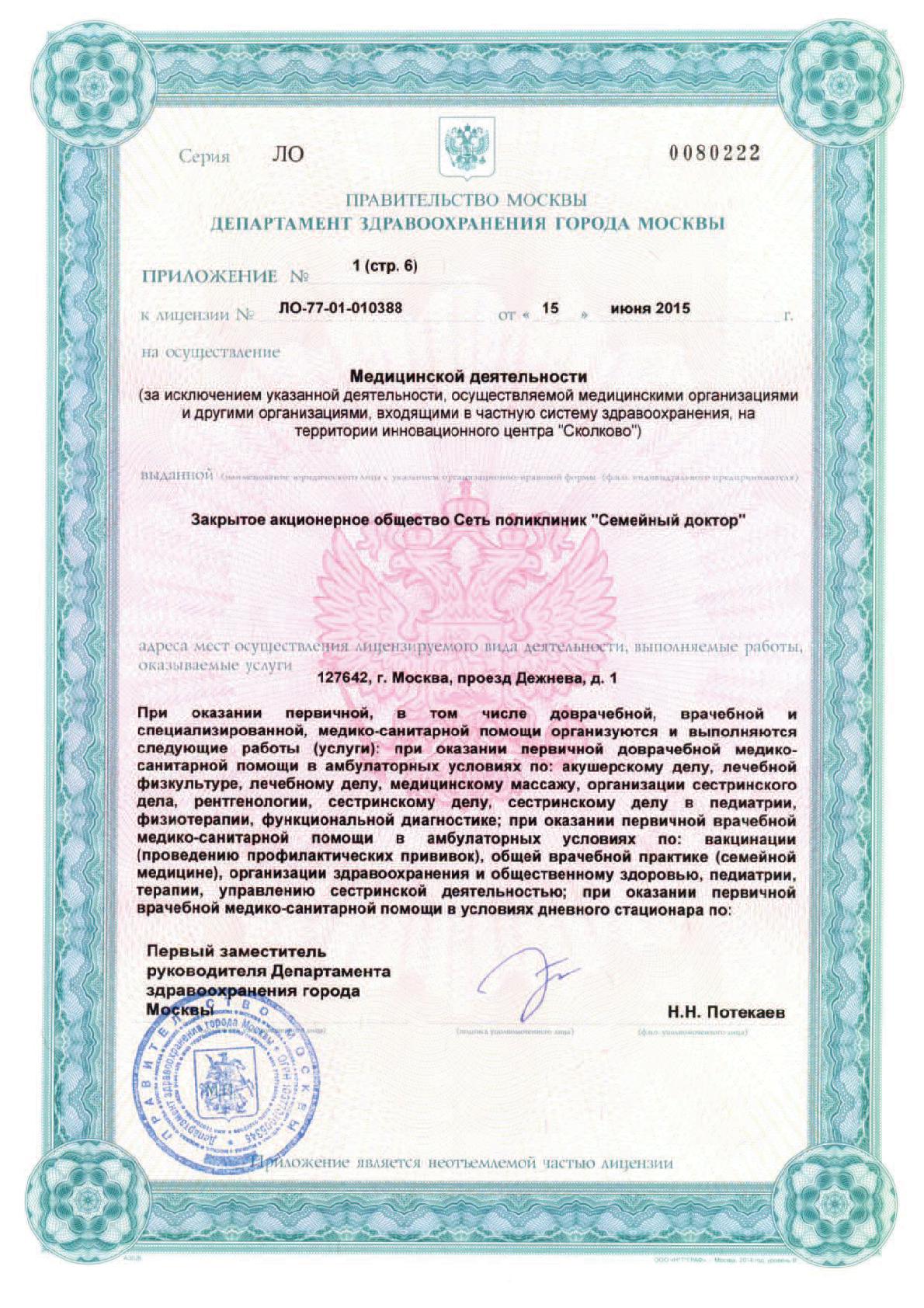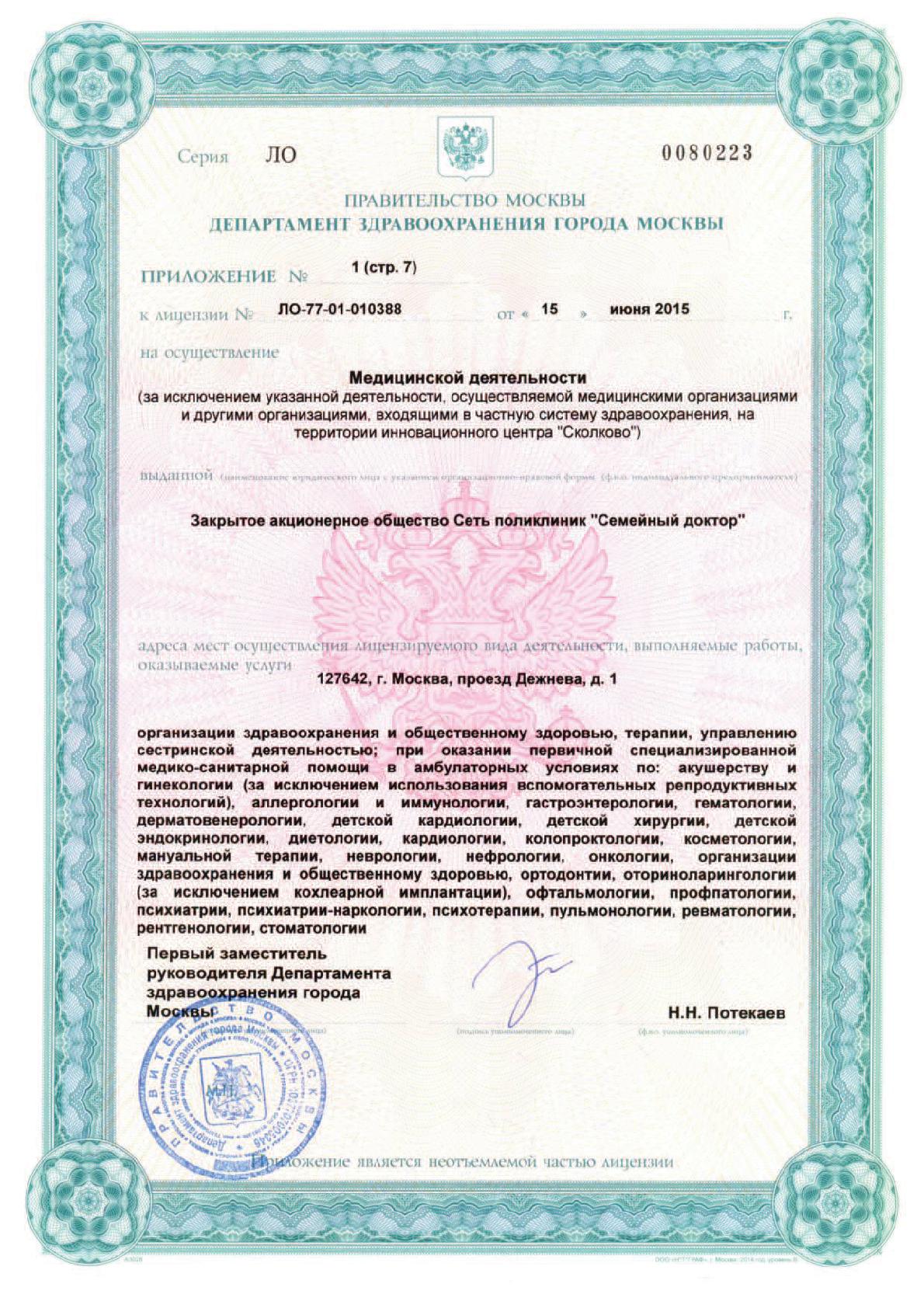Многопрофильный медицинский центр «Семейный доктор» в проезде Дежнева (м. Бабушкинская) – современное амбулаторно-поликлиническое учреждение для взрослых и детей. В клинике предоставляется весь комплекс поликлинических услуг семейной медицины для пациентов любых возрастов: консультации специалистов, диагностика, консервативное и хирургическое лечение, реабилитация. В центре проводят прием врачи всех направлений: гастроэнтеролог, гинеколог, дерматовенеролог, косметолог, кардиолог, логопед, ЛОР, маммолог, невролог, онколог, офтальмолог, педиатр, проктолог, пульмонолог, пластический хирург, ревматолог, стоматолог, травматолог-ортопед, уролог, флеболог, физиотерапевт и др. Также специалисты МЦ «Семейный доктор» оказывают консультативную помощь на дому.