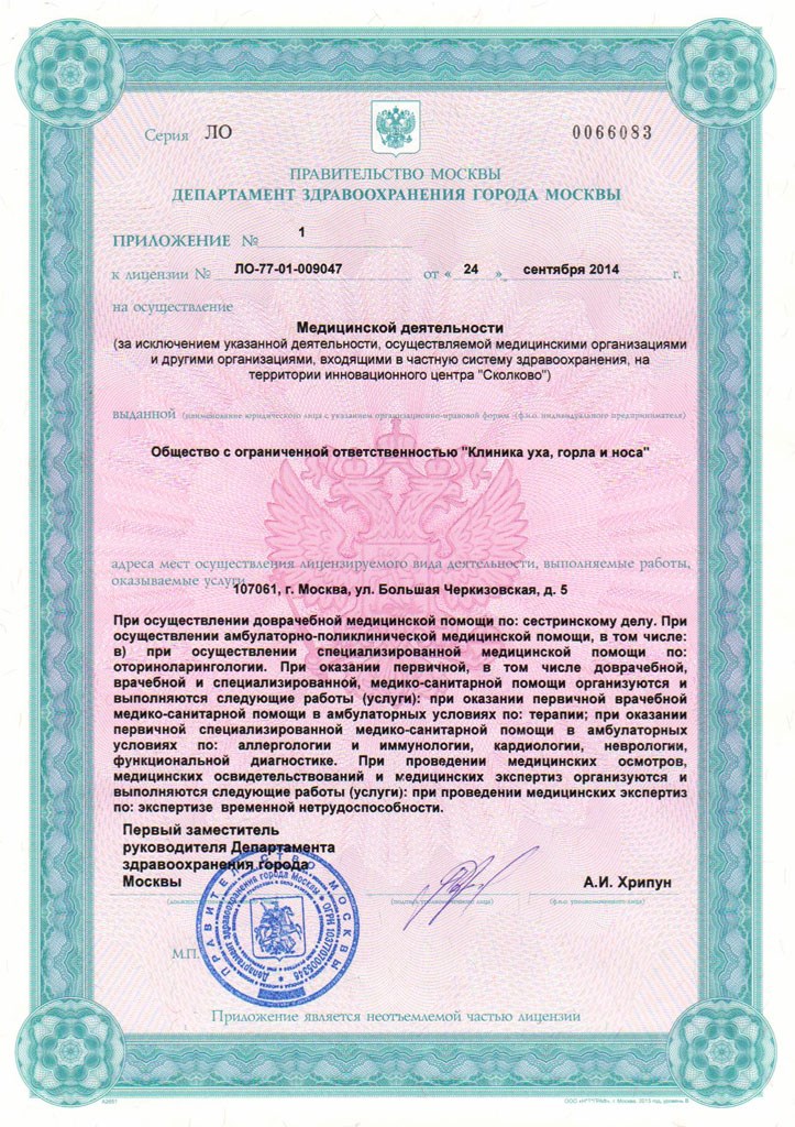 «Клиника уха, горла и носа» на ул. Большая Черкизовская (м. Преображенская площадь) специализируется в области взрослой и детской отоларингологии, является филиалом сети медицинских центров «Клиника уха, горла и носа». В медицинском центре проводится прием специалистов-отоларингологов, невролога, аллерголога-иммунолога, кардиолога, терапевта. В «Клинике уха, горла и носа» можно пройти полный комплекс обследования ЛОР-органов с использованием современной аппаратуры, лечение острой и хронической ЛОР-патологии (гайморита, ларингита, отита, ринита, синусита, тонзиллита, фарингита, тугоухости и др.). Нашей целью является оказание качественной и своевременной медицинской помощи, используя самые передовые достижения современной медицины. Мы уделяем огромное внимание стандартам качества обслуживания клиентов, используемому оборудованию и технологиями, качеству взаимоотношений с пациентами. Лор-врачи клиники имеют огромный и уникальный опыт лечения, как взрослых пациентов, так и детей. У нас работает высокопрофессиональная команда лор-врачей высшей квалификационной категории, ринохирургов и отохирургов, в том числе 40% врачей, имеющих ученую степень кандидата медицинских наук, способных решать сложнейшие задачи и проводить уникальные хирургические операции лор-органов. При наличии показаний для оперативного вмешательства пациент может быть направлен в филиал на Цветном бульваре, оборудованный современной операционной и стационаром.