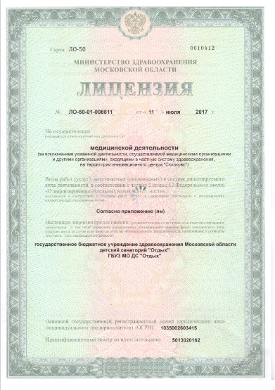 Детский Санаторий "Отдых" расположен в г. Жуковский Московской области на 15,5 га хвойно-лиственного леса. Воздух наполнен целебным ароматом хвои и оказывает общеукрепляющее воздействие на организм отдыхающих, создает благоприятные условия для лечения и отдыха. В санатории работают два отделения: санаторно-курортное лечение и медицинская реабилитация. Лечебный корпус оснащен современным медицинским оборудованием. В Санатории работают квалифицированные специалисты: педиатры, аллерголог-иммунолог, диетолог, кардиолог, отоларинголог, пульмонолог, терапевт, невролог, врач ортопед, врач клинической лабораторной диагностики, физиотерапевт и врач функциональной диагностики. При наличии показаний возможно направление на обследование и лечение в Московский НИИ педиатрии и детской хирургии. В санатории разработан комплекс реабилитационных мероприятий с применением широкого спектра немедикаментозных методов лечения, позволяющих уменьшить фармакологическую нагрузку на больных и добиться стабилизации их состояния в более короткие сроки (рациональное питание, диетотерапия, лечебная физкультура, различные физиотерапевтические воздействия, ручной и аппаратный массаж, ингаляционная терапия, галотерапия, нормобарическая гипокситерапия «Горный воздух», обучение релаксационно — диафрагмальному типу дыхания, кислородные коктейли, занятия в Астма-школе, санация очагов хронической инфекции).