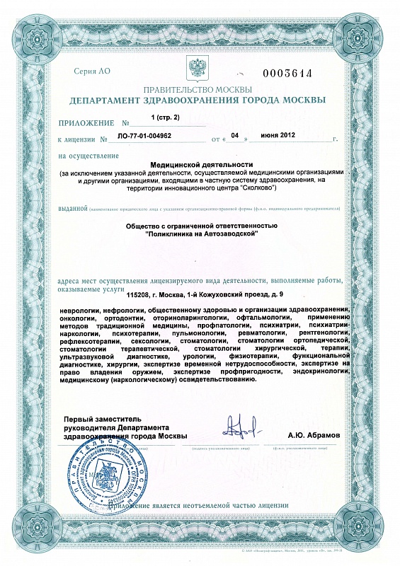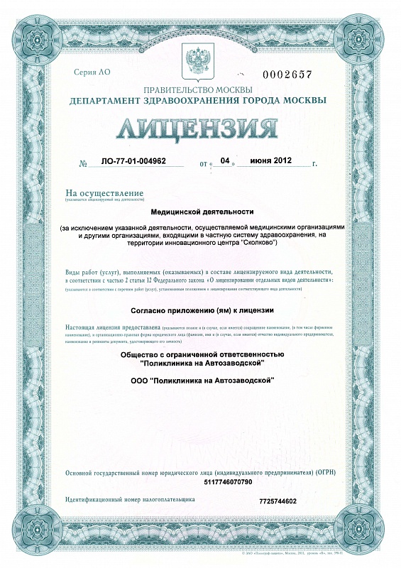 «Поликлинника.ру» в 1-м Кожуховском проезде (м. Автозаводская) - современный многопрофильный медицинский центр, оказывающий полный спектр услуг по восстановлению и укреплению здоровья. В медцентре проводится консультативный прием, диагностика и лечение пациентов по направлениям: аллергология, гинекология, кардиология, дерматология, отоларингология, офтальмология, урология, эндокринология, андрология, психотерапия, физиотерапия, флебология, неврология, гастроэнтерология, стоматология и др. В медицинском центре «Поликлинника.ру» выполняется рентгеновская, ультразвуковая, функциональная диагностика заболеваний, работает круглосуточный травмпункт.