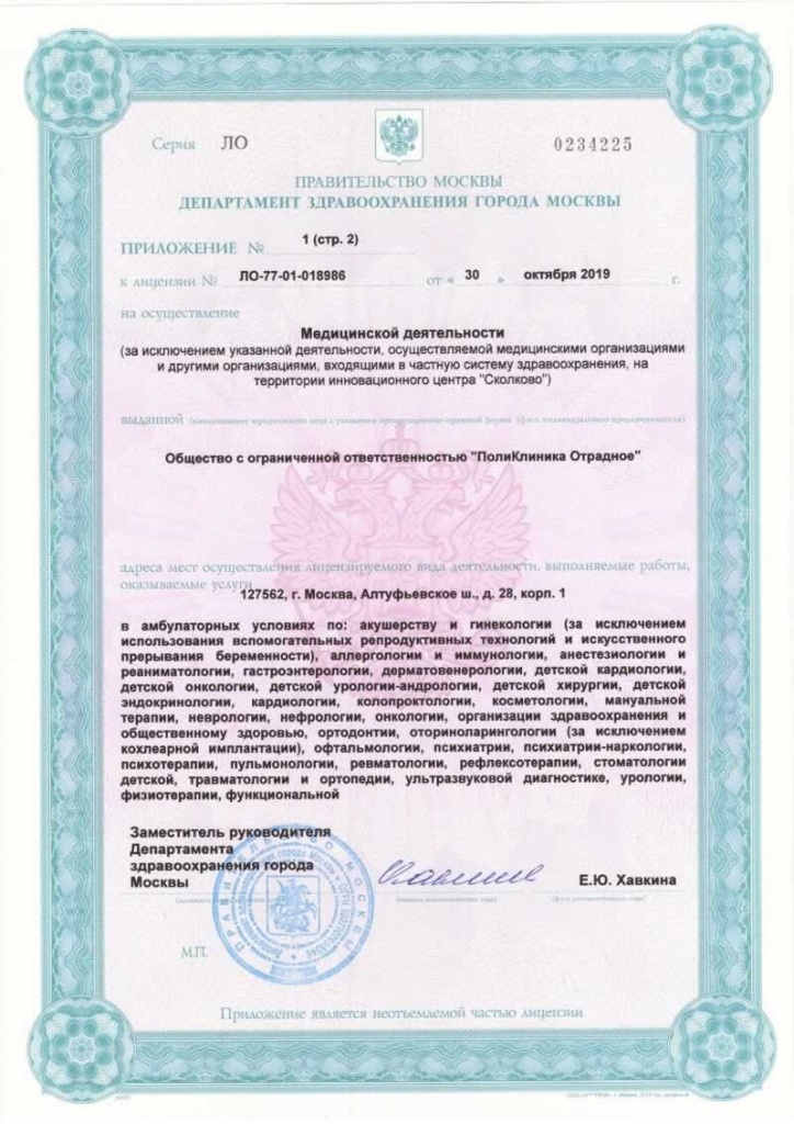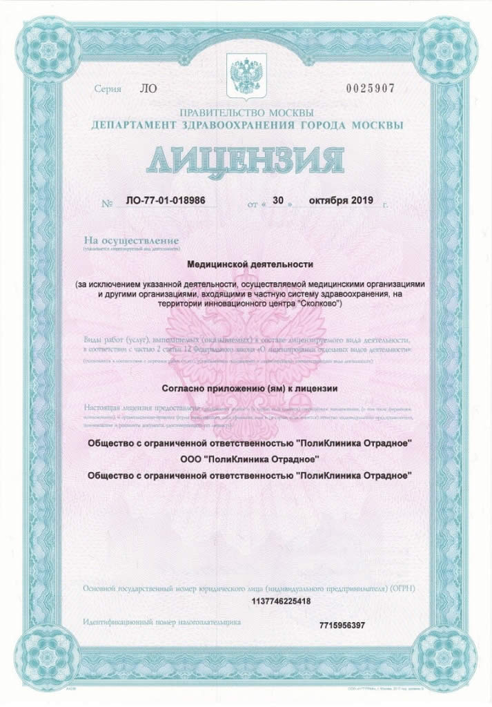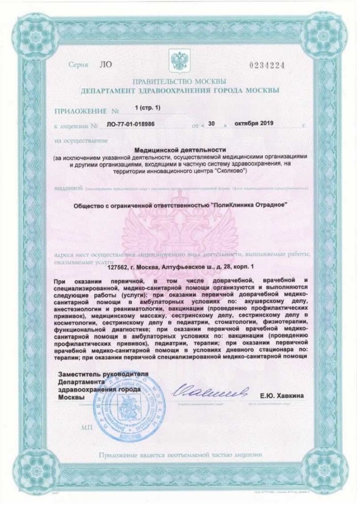 Поликлиника Отрадное и Поликлиника Митино – крупные многопрофильные клиники в Москве, объединённые общей миссией: сделать людей здоровыми и счастливыми. Оказание медицинской помощи в наших клиниках строится на трех принципах: доступность, человечность и качество. Клиники спроектированы так, что большинство медицинских услуг можно получить в одном здании и за 1 день. Высокое качество оказания медицинских услуг по разумной цене. Действуют скидки по социальной карте, комплексным программам, сезонные акции со скидкой до 100%. Тщательно отбираем персонал по личным качествам, любящих людей и свое дело. Назначаем только самые необходимые исследования и консультации. Открыты к диалогу. Отбираем профессиональных врачей с большим опытом работы, с высоким уровнем эмпатии. Работаем на современном оборудовании и с препаратами с доказанной эффективностью и безопасностью. Обследуем и лечим по федеральным стандартам. Первая наша клиника - Поликлиника Отрадное - была открыта в 2003 году в отдельно стоящем здании, расположенном на дублере Алтуфьевского шоссе. По сей день медицинский центр является крупнейшим в СВАО и любимой клиникой не только для жителей районов Отрадное, Бибирево, Владыкино и Алтуфьево, а также других районов Москвы и ближайшего Подмосковья. Поликлиника Отрадное – это: 2500 метров медицинских площадей; 72 медицинских специализации; 4500 медицинских услуг; более 100 врачей; тысячи пациентов в месяц. Это уникальное медицинское учреждение, в котором все подразделения расположены в одном здании.