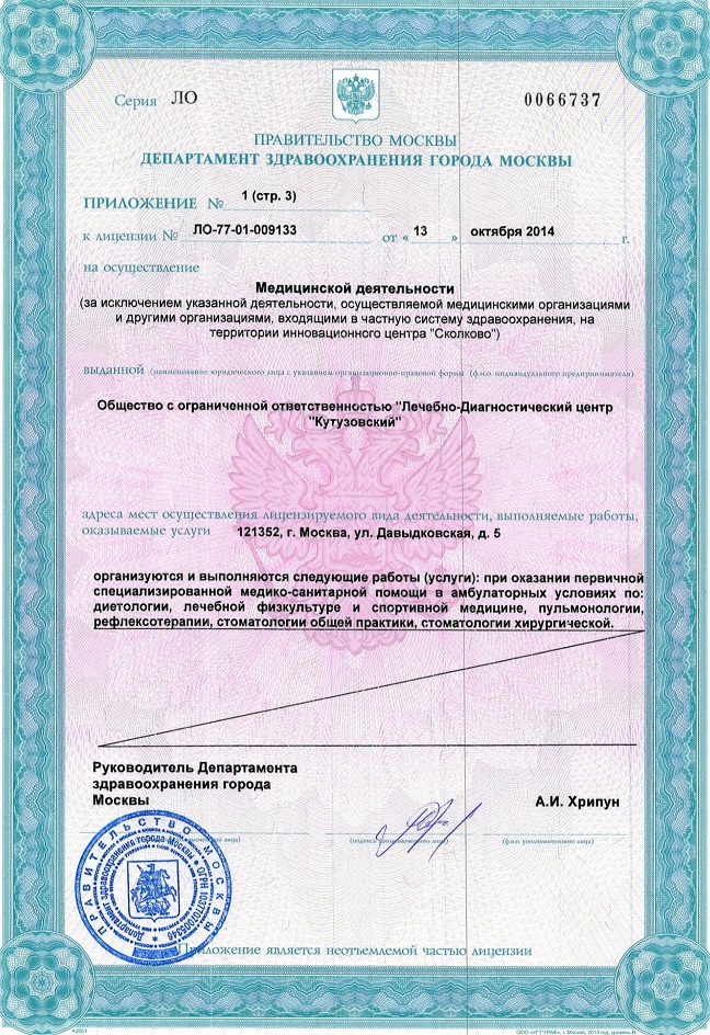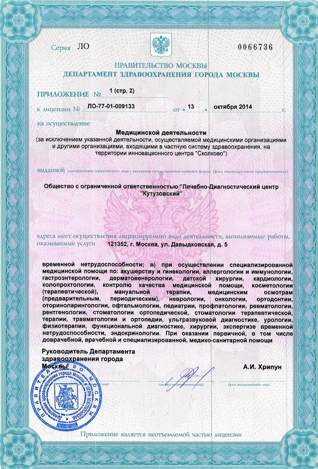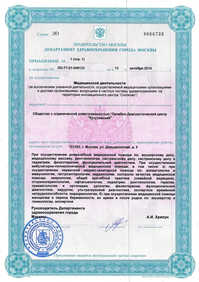 В Лечебно-диагностическом центре «Кутузовский» на ул. Давыдковская (м. Славянский бульвар) созданы благоприятные условия для эффективной профилактики, точной диагностики и грамотного лечения заболеваний. В клинике проводятся все виды диагностических исследований – функциональных, лабораторных, рентгенологических, томографических. Консультативный прием ведут специалисты разных направлений – акушеры-гинекологи, урологи, дерматологи, терапевты, неврологи, эндокринологи, ревматологи, аллергологи, маммологии, травматологи-ортопеды, офтальмологи, отоларингологи, физиотерапевты, стоматологи. В многопрофильном лечебно-диагностическом центре «Кутузовский» созданы специальные комплексные программы обследования. Для своих посетителей ЛДЦ "Кутузовский" разработал "Школу пациента". Также информацию о нас вы можете найти в социальных сетях.