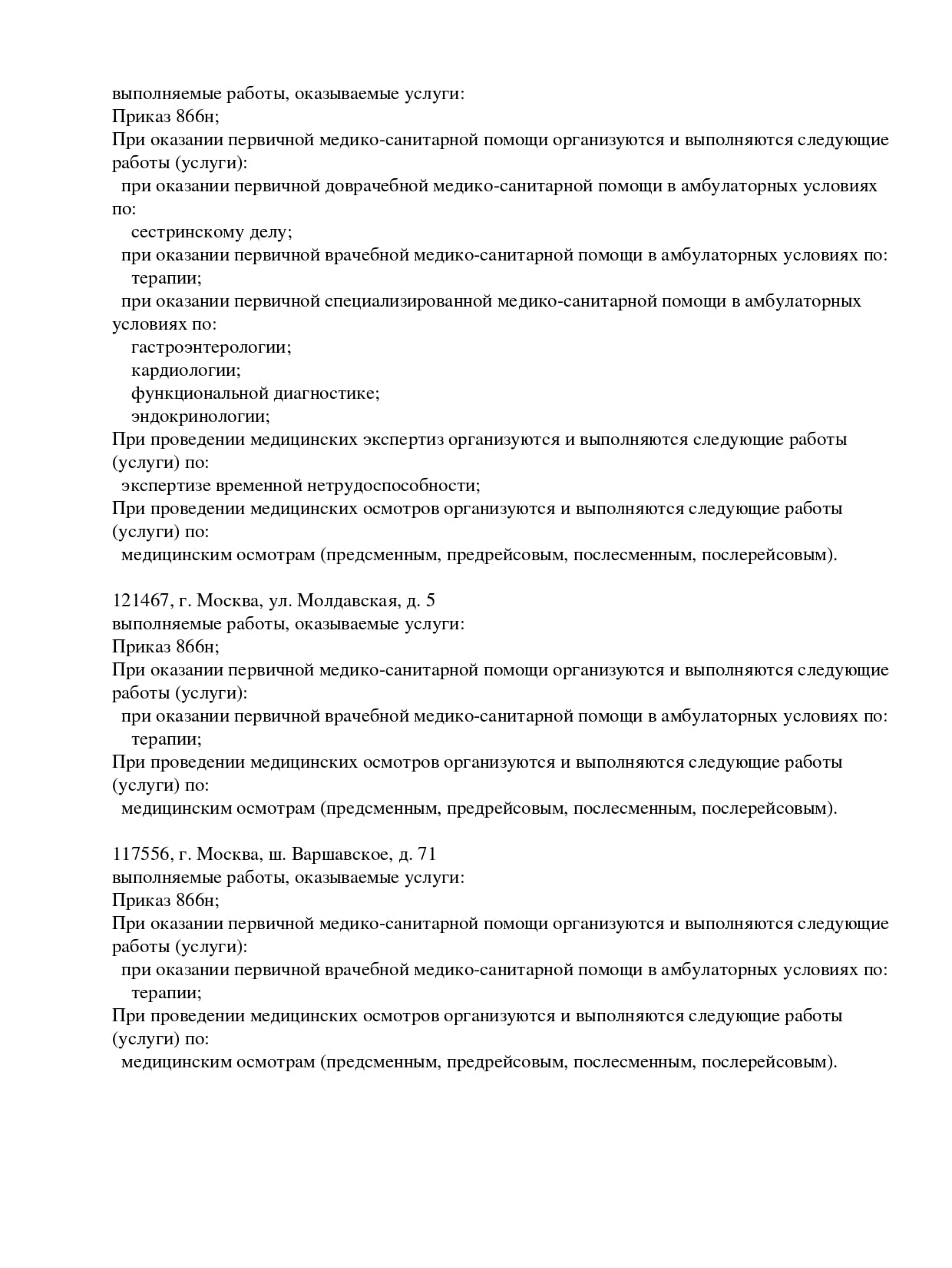 «Вита Мед» – сеть специализированных медицинских кабинетов, основным направлением которых является проведение предрейсовых и послерейсовых медицинских осмотров водителей в Москве и Московской области. Наша цель – предоставить нашим клиентам качественные, понятные и доступные услуги по предрейсовым осмотрам, а также комплекс других сопутствующих услуг, делающих жизнь и работу людей более безопасными. В случае государственной проверки, подготовим все необходимые документы и пройдём процедуру вместе с Вами. Для нас это нетрудно, так как мы работаем в соответствии с приказом Министерства здравоохранения РФ от 15 декабря 2014 г. N 835н «Об утверждении Порядка проведения предсменных, предрейсовых и послесменных, послерейсовых медицинских осмотров». Кроме того, «Вита Мед» создает в медицине новый удобный и безопасный формат обслуживания на дому. Это клиника на дом, которая предоставляет широкий спектр медицинских услуг с выездом к пациенту. Основные направления деятельности: вызов врача на дом (включая обслуживание клиентов по программе ДМС); вызов медсестры на дом, все виды анализов; консультативная помощь; прием врача-терапевта в офисе; проведение вакцинации; предрейсовый (предсменный) медицинский осмотр водителей; госпитализация и реабилитация пациентов (помощь в организации лечения).