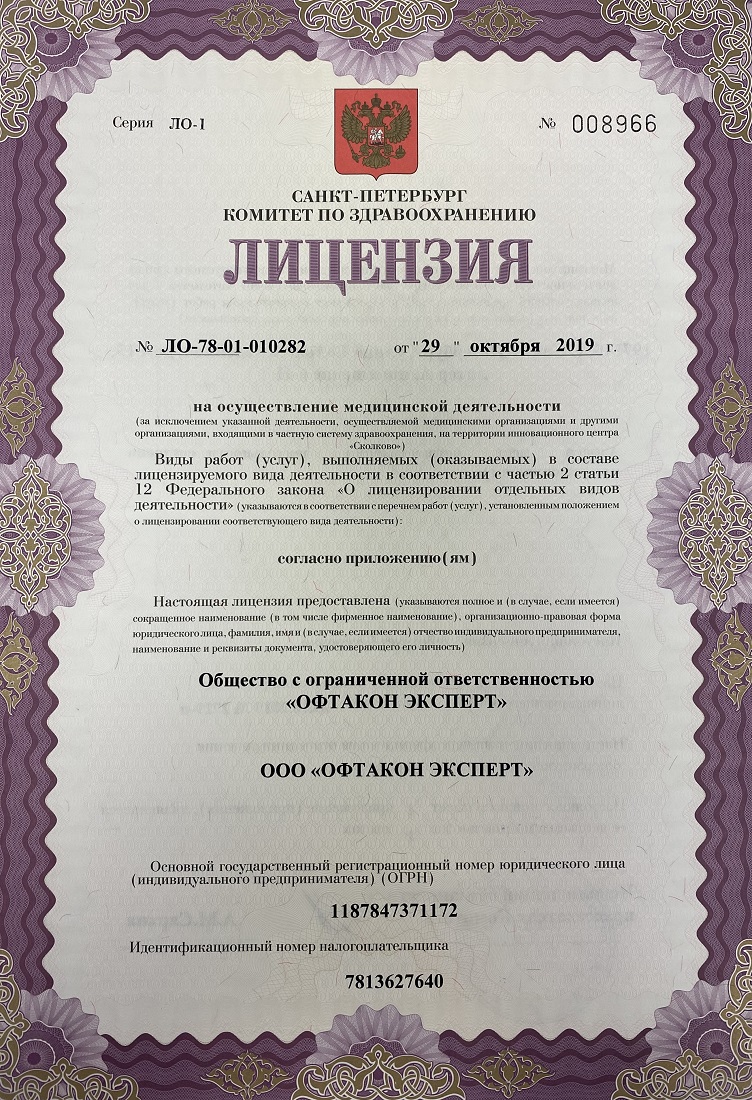 Офтальмологический центр «Офтакон Эксперт» на ул. Большая Зеленина г. Санкт-Петербурга (м. Чкаловская) предлагает Вам широкий спектр услуг: от подбора очков и контактных линз любой сложности до современного комплексного диагностического обследования и консультации ведущих офтальмологов г. Санкт-Петербурга. В нашем центре ведут прием специалисты кафедры офтальмологии Первого Санкт-Петербургского государственного медицинского университета им. акад. И.П. Павлова, Городского офтальмологического диагностического центра №7 и Городской многопрофильной больницы №2. Мы хорошо знакомы со структурой офтальмологической помощи в Санкт-Петербурге, длительные профессиональные контакты связывают нас с ведущими специалистами и офтальмологическими обществами зарубежных стран.