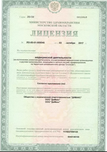 Лечебно-диагностический центр «ДиМакс» в Раменском, на ул. Чугунова, оказывает широкий спектр медицинских услуг в области урологии и андрологии, гинекологии, неврологии, гастроэнтерологии, флебологии, эндокринологии, дерматологии, косметологии и др. В клинике осуществляется лабораторная и ультразвуковая диагностика, ведение и прерывание беременности, медицинский массаж, мануальная терапия и мн. др. К услугам посетителей медицинского центра «ДиМакс» - современная высокоточная диагностика на оборудовании экспертного уровня, результативное лечение и своевременная профилактика широкого спектра заболеваний. Наш коллектив врачей - это высококлассные специалисты работающие в ведущих научно-практических учреждениях Москвы и Московской области. Среди них: 7 кандидатов медицинских наук; 7 хирургов; 8 УЗИ-диагностов. Вы можете быть уверены в качестве медицинской помощи.