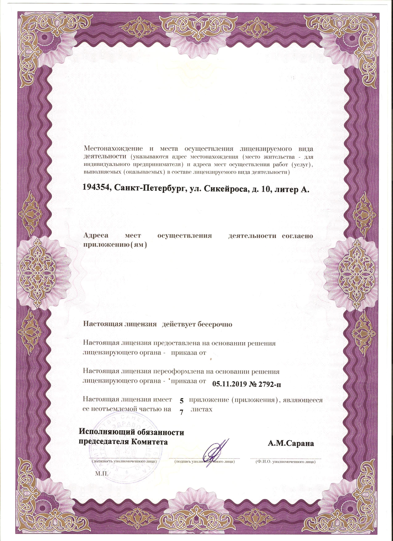 Адрес: г. Санкт-Петербург,