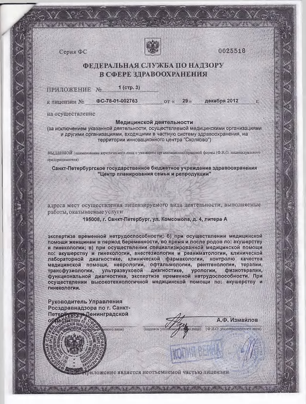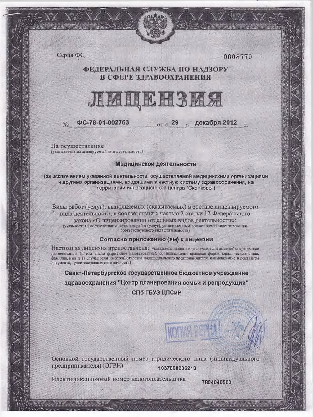 «Центр планирования семьи и репродукции» специализируется в сфере мужского и женского репродуктивного здоровья. Здесь оказывается полный спектр услуг по вопросам планирования и ведения беременности; функционируют гинекологический центр, урологический центр, кабинеты узких специалистов, клинические отделения и стационар. К услугам пациентов – приемы специалистов (гинеколога, репродуктолога, маммолога, эндокринолога и др.), передовые диагностические и лечебные технологии (УЗИ, МРТ, рентген), собственная современная лаборатория. На базе «Центра планирования семьи и репродукции» успешно работает отделение вспомогательных репродуктивных технологий (ВРТ), оказывающее специализированную высокотехнологичную медицинскую помощь в лечении различных форм бесплодия.