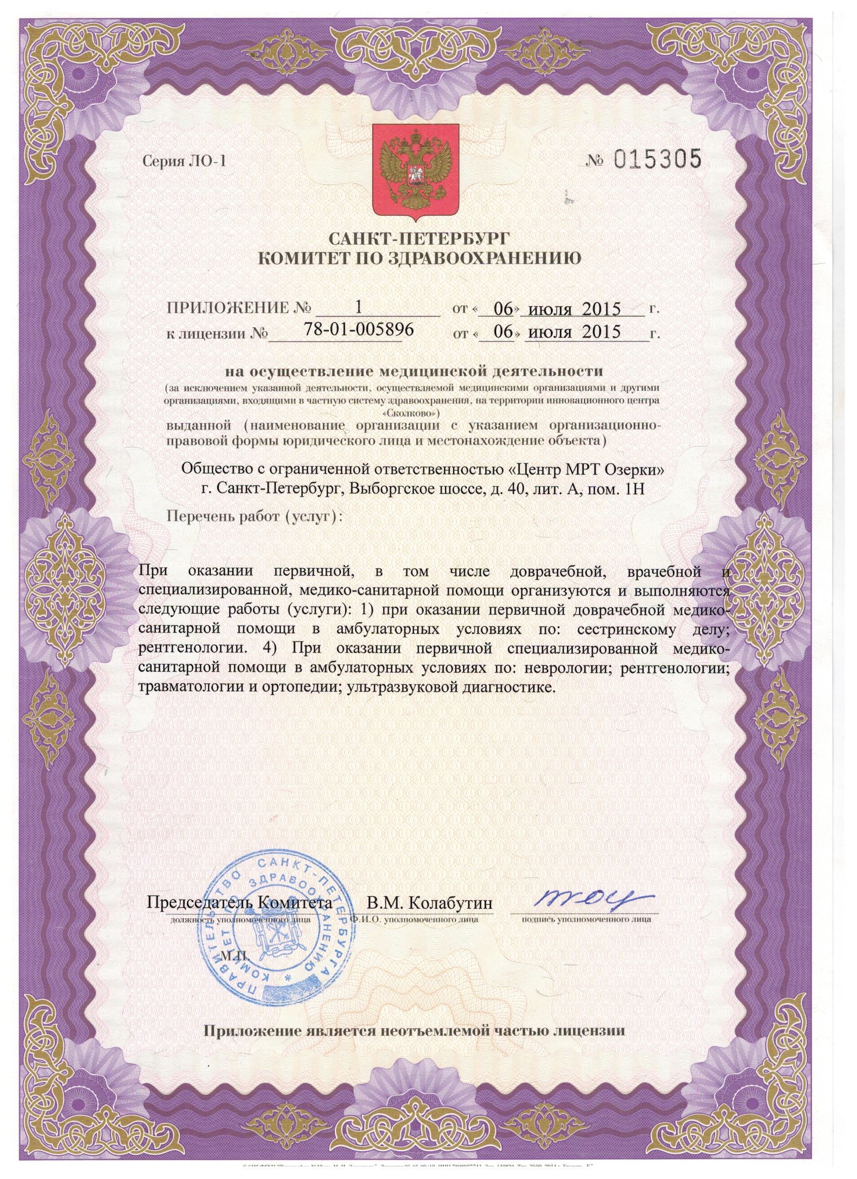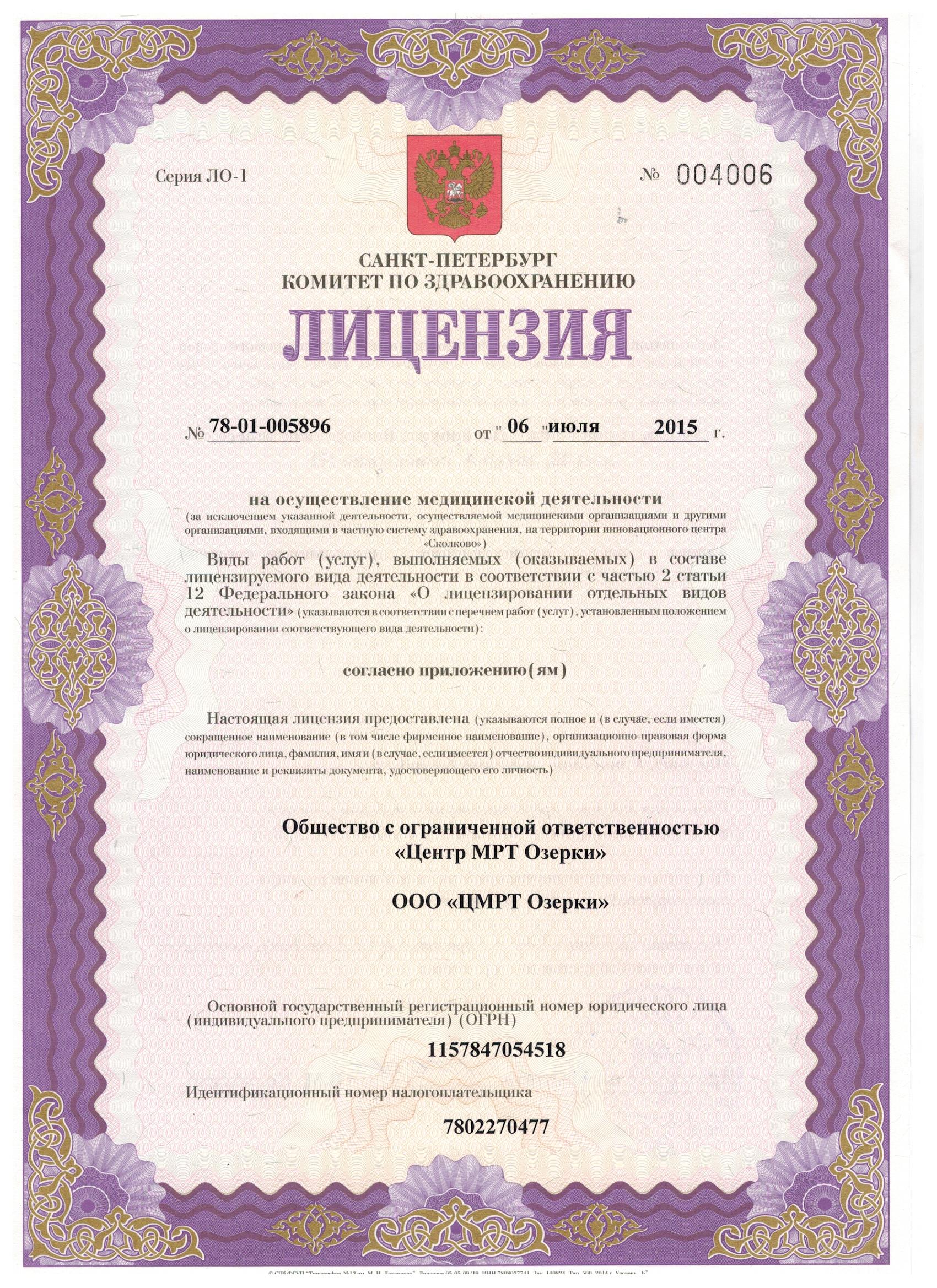 Диагностический центр «ЦМРТ Озерки» на Выборгском шоссе Санкт-Петербурга (м. Озерки) - специализированный центр магнитно-резонансной диагностики. Здесь вы можете пройти МРТ головного мозга, позвоночника, суставов, любых внутренних органов, сосудов, мягких тканей. Центр оснащен высокопольным томографом General Electric Signa HDxT напряженностью магнитного поля 1,5 Тл. В «ЦМРТ Озерки» используется технология телерадиомедицины: все диагностические изображения по защищенному каналу передаются в центр хранения снимков, где высококлассные врачи-рентгенологи выполняют описания исследований.