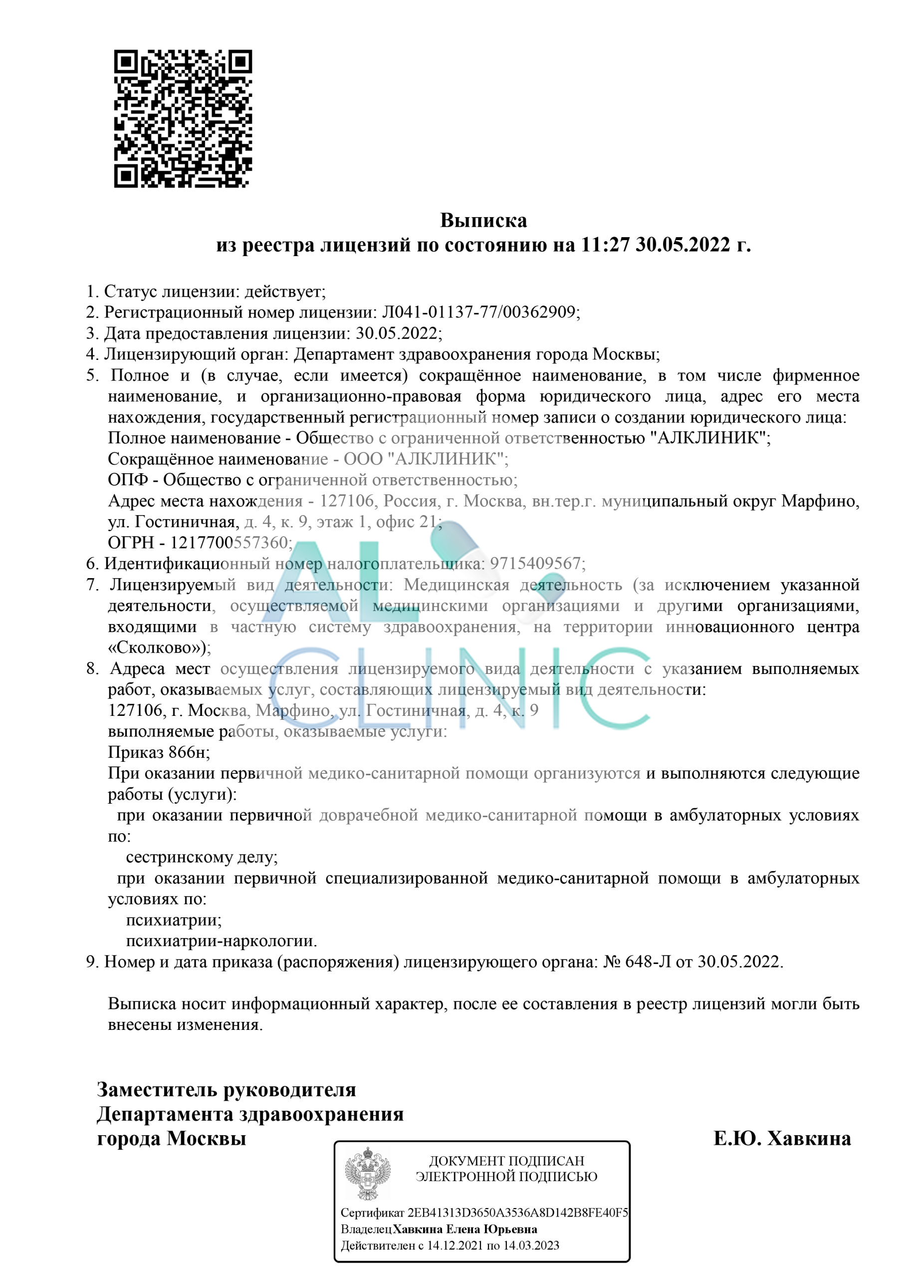 «Алклиник» на ул. Гостиничная (м. Окружная) - специализированная наркологическая клиника. Наша клиника оказывает услуги по выводу из запоя и лечению зависимостей. «Алклиник» была основана в 2012 году. Тогда было открыто первое отделение наркологии. В этом же году появилась возможность выездного приема. В 2014-2015 годах было открыто еще одно отделение наркологии, а также было сформировано новое направление психиатрии. С 2015 года по настоящий момент клиника активно развивается, появилось еще одно направление – реабилитации. На сегодняшний день одно из самых популярных направлений деятельности это медико-социальная реабилитация. Квалифицированное лечение – это залог успешного выздоровления, поэтому в нашей клинике работают высококлассные специалисты. Наши доктора регулярно проходят курсы повышения квалификации, что позволяет использовать самые современные методики лечения.