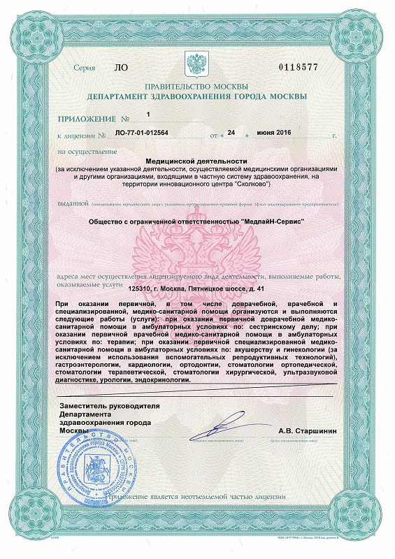 В клинике «Медлайн-Сервис» на ул. Митинская (м. Пятницкое шоссе) консультируют терапевты, кардиологи, неврологи, лор-врачи, эндокринологи, гастроэнтерологи, урологи, гинекологи, офтальмологи, ортопеды, стоматологи, мануальные терапевты и остеопаты. В клинике проводятся лабораторные исследования и ультразвуковая диагностика, осуществляется наблюдение беременных. Клиника «Медлайн-Сервис» проводит профилактические осмотры, оформляет справки и медицинские книжки. В клинике имеется современное диагностическое оборудование, проводится качественное лечение, своевременная и грамотная профилактика заболеваний.