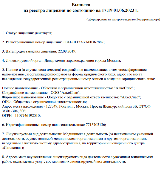 АлкоСпас в Шенкурском проезде - отзывы о клинике