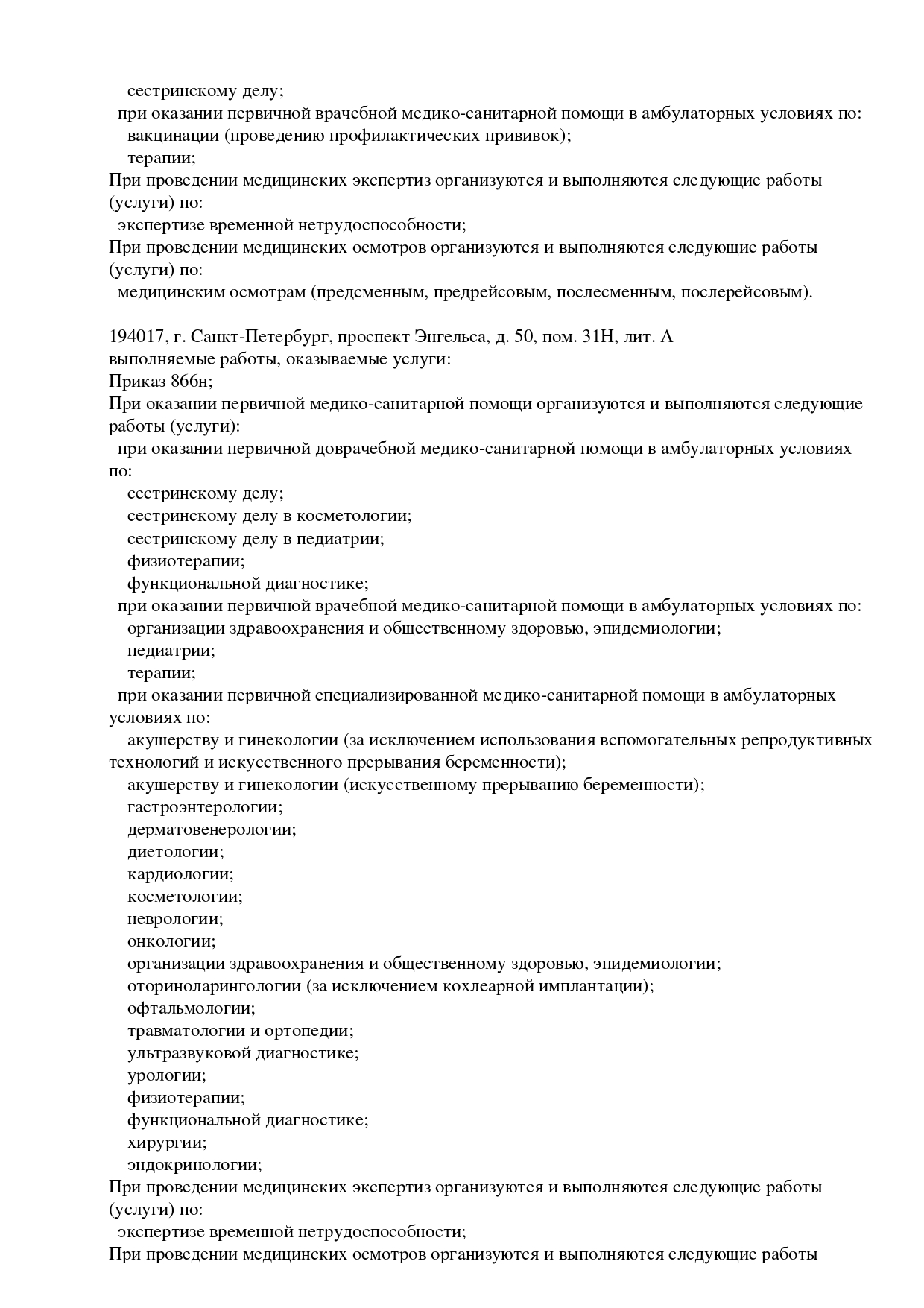 Медицинский центр «ВитаМедПро» на проспекте Энгельса г. Санкт-Петербурга (м. Удельная) предоставляет широкий спектр медицинских услуг, более 20 направлений. Консультации врачей почти по всем направлениям медицины. Все наши специалисты имеют действующие сертификаты и регулярно проходят дополнительное профессиональное обучение. Мы готовы помочь в диагностике заболеваний. Медцентр оснащен современными аппаратами европейского качества, что позволяет проводить обследование и лечение на самом высоком уровне. Выездная медицинская служба VitaMedPro предлагает услуги специалистов на дому. Мы работаем в Санкт-Петербурге и Ленинградской области. Врачи и медсестры оказывают медицинскую помощь пациентам на дому: взрослым и детям (0+). Диагностика, в том числе с помощью портативных устройств (УЗИ, ЭКГ). Медицинские назначения (капельницы, уколы). Анализы на дому, Лечебный массаж.