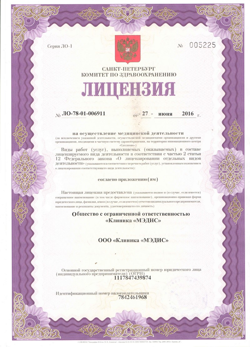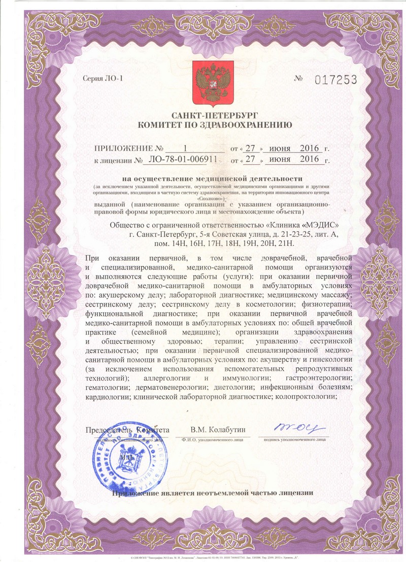 Медицинский центр «Мэдис» на ул. Петропавловская Санкт-Петербурга (м. Петроградская) оказывает амбулаторно-поликлиническую медицинскую помощь. В клинике представлены направления: пульмонология, кардиология, гематология, неврология, гинекология, урология, офтальмология, отоларингология, гастроэнтерология, эндокринология, ревматология, онкология, дерматология и др. Здесь можно выполнить широкий спектр лабораторных анализов, пройти ультразвуковую диагностику. Особое внимание уделяется лечению различных неврологических заболеваний – болей в спине, мышцах, головных болей. Восстановительным лечением занимаются врачи-неврологи, врачи мануальной терапии, иглорефлексотерапевты; проводится гирудотерапия, лечебный массаж, физиотерапевтическое лечение. Медицинский центр «Мэдис» отличает высокий уровень обслуживания, индивидуальный подход к проблемам пациентов, высокий профессионализм специалистов.