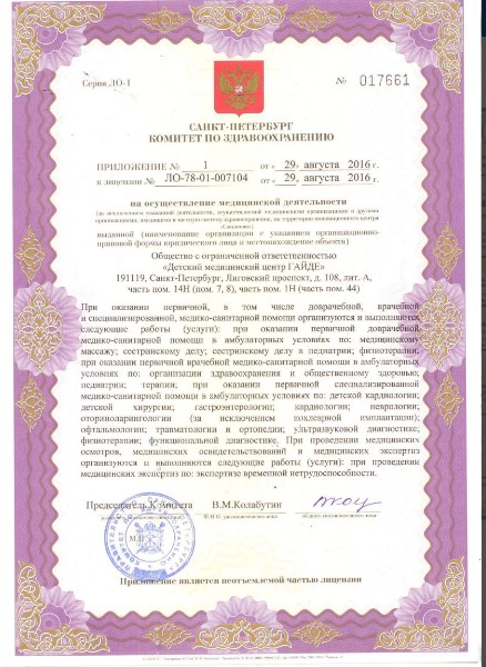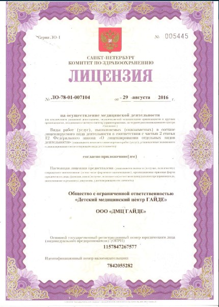 Многопрофильная клиника и центр вакцинации «Гайде» на Лиговском проспекте г. Санкт-Петербурга (м. Лиговский проспект) оказывает специализированную медицинскую помощь детскому и взрослому населению. В клинике ведут прием специалисты различных профилей: педиатры, терапевты, врач общей практики, остеопаты, кардиологи, оториноларингологии. Перечень услуг включает УЗИ-диагностику, ЭКГ, все виды клинических анализов, профессиональный массаж, вакцинацию, оформление всех видов медицинских справок и мн. др. Возможен вызов педиатра и врачей-специалистов клиники «Гайде» на дом.