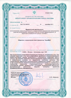 Медицинский центр «АрхиМЕД» в Зеленограде оказывает лечебно-диагностическую помощь амбулаторно и на дому по специальностям: гинекология, отоларингология, неврология, ортопедия-травматология, терапия, эндокринология, флебология и др. В клинике проводятся консультации, УЗИ, функциональная диагностика, амбулаторные операции, все виды инъекций, более 1000 видов анализов. Услуги медицинского центра «АрхиМЕД» также включают круглосуточную неотложную наркологическую помощь.
