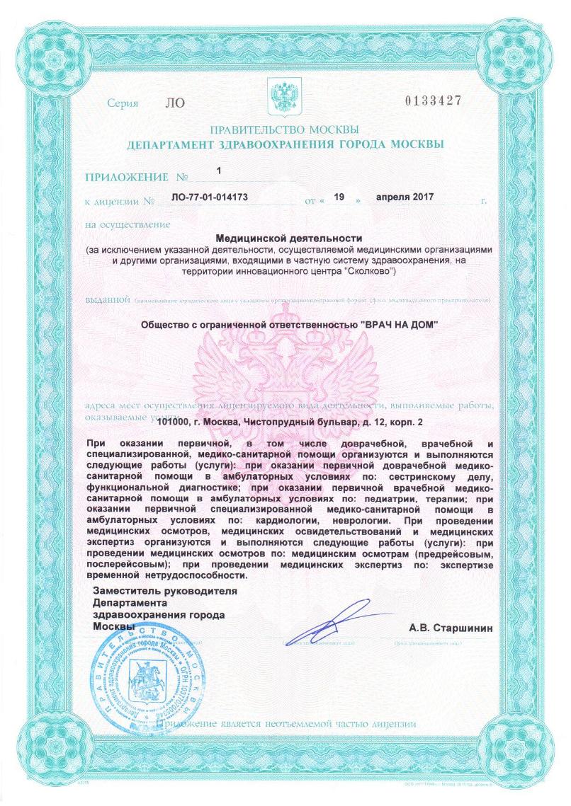 Выездная медицинская служба помощи на дому «Врач на Дом» на Чистопрудном бульваре (м. Чистые Пруды) предоставляет медицинские услуги на дому взрослым и детям с рождения. В составе медслужбы есть врачи разных специальностей: терапевты, педиатры, узкие специалисты разных специальностей и медицинские сестры. По назначению врача на дому могут выполняться диагностические и лечебные манипуляции: взятие биоматериала для лабораторной диагностики, ЭКГ, УЗИ/УЗДГ, капельницы и медицинский массаж. По медицинским показаниям врачи на дому оформляют пациенту листок нетрудоспособности (больничный лист), включая больничный лист по уходу за больным членом семьи.