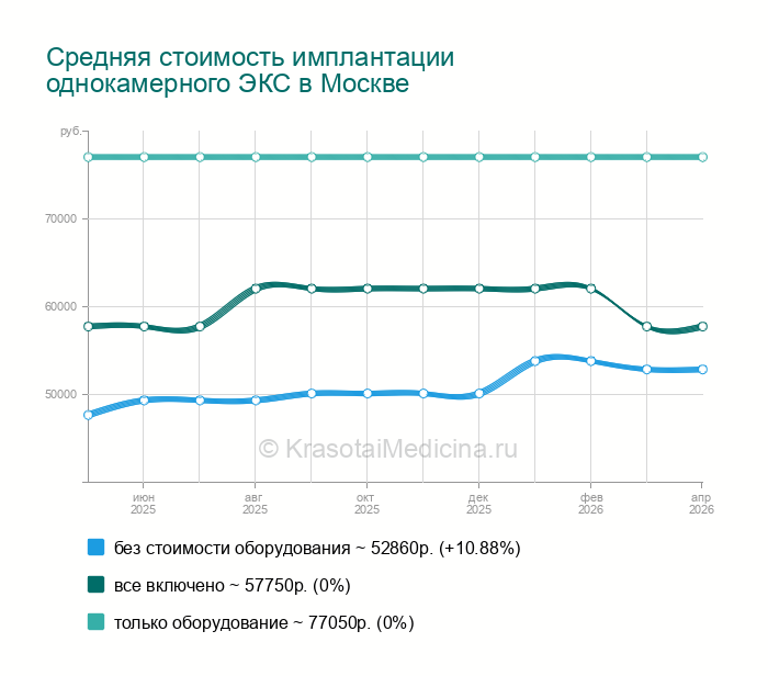 - Имплантация однокамерного ЭКС (без стоимости оборудования) ~ 52 860р.18 цен