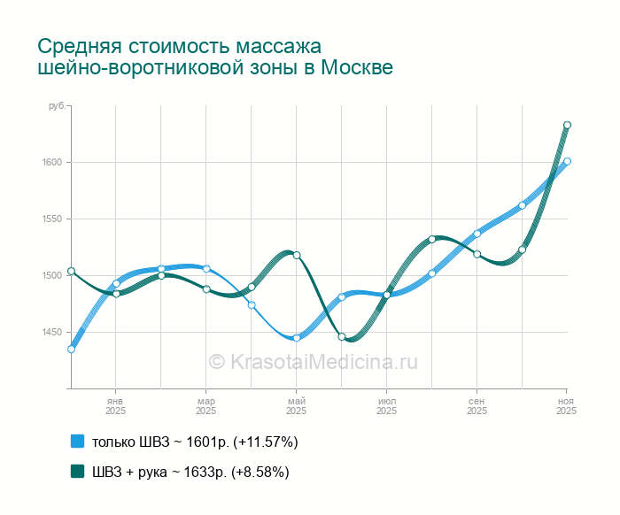 Стоимость массажа шейно-воротниковой зоны в Москве