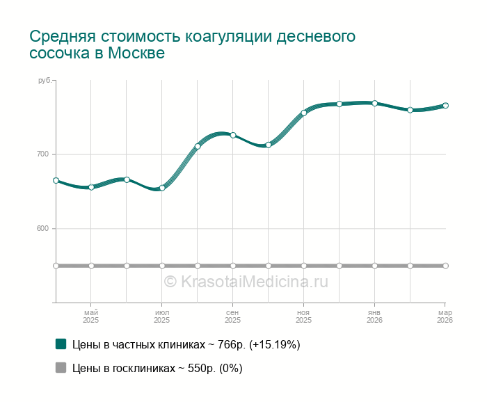 Коагуляция десневого сосочка - цены в Москве