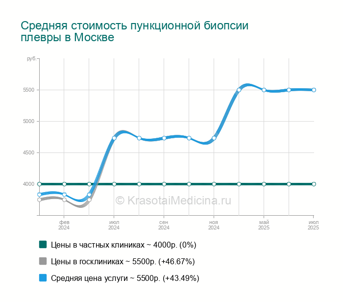 Пункционная биопсия плевры – диагностическая трансторакальная манипуляция, заключающаяся в получении фрагмента измененной плевры для цито-морфологического исследования. Пункционная биопсия плевры показана в том случае, если торакоцентез не позволяет провести точную верификацию диагноза и установить причину образования плеврального выпота. Под местной анестезией тканей производится прокол грудной стенки и плевры с помощью иглы-троакара с режущим концом. Полученный фрагмент плевры направляется для гистологического и цитологического изучения. Точность диагностики плевритов злокачественной и туберкулезной этиологии с помощью пункционной биопсии плевры достигает 90%.